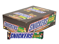Шоколадный батончик Snickers Лесной орех - это популярный батончик с  оригинальной начинкой из цельного жареного арахиса, фундука, нуги и карамели,  покрытый сверху слоем молочного шоколада.